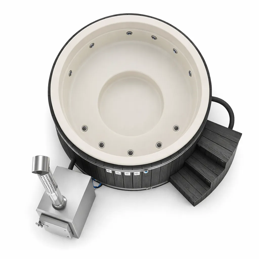 Balia opalana drewnem Tarkine (EX) może zostać doposażona w system hydromasażu, masaż powietrzny oraz podwodne oświetlenie LED. Dzięki temu możesz zbudować zestaw, który bardziej przypomina domowe SPA i daje większą swobodę w doborze wrażeń podczas kąpieli.