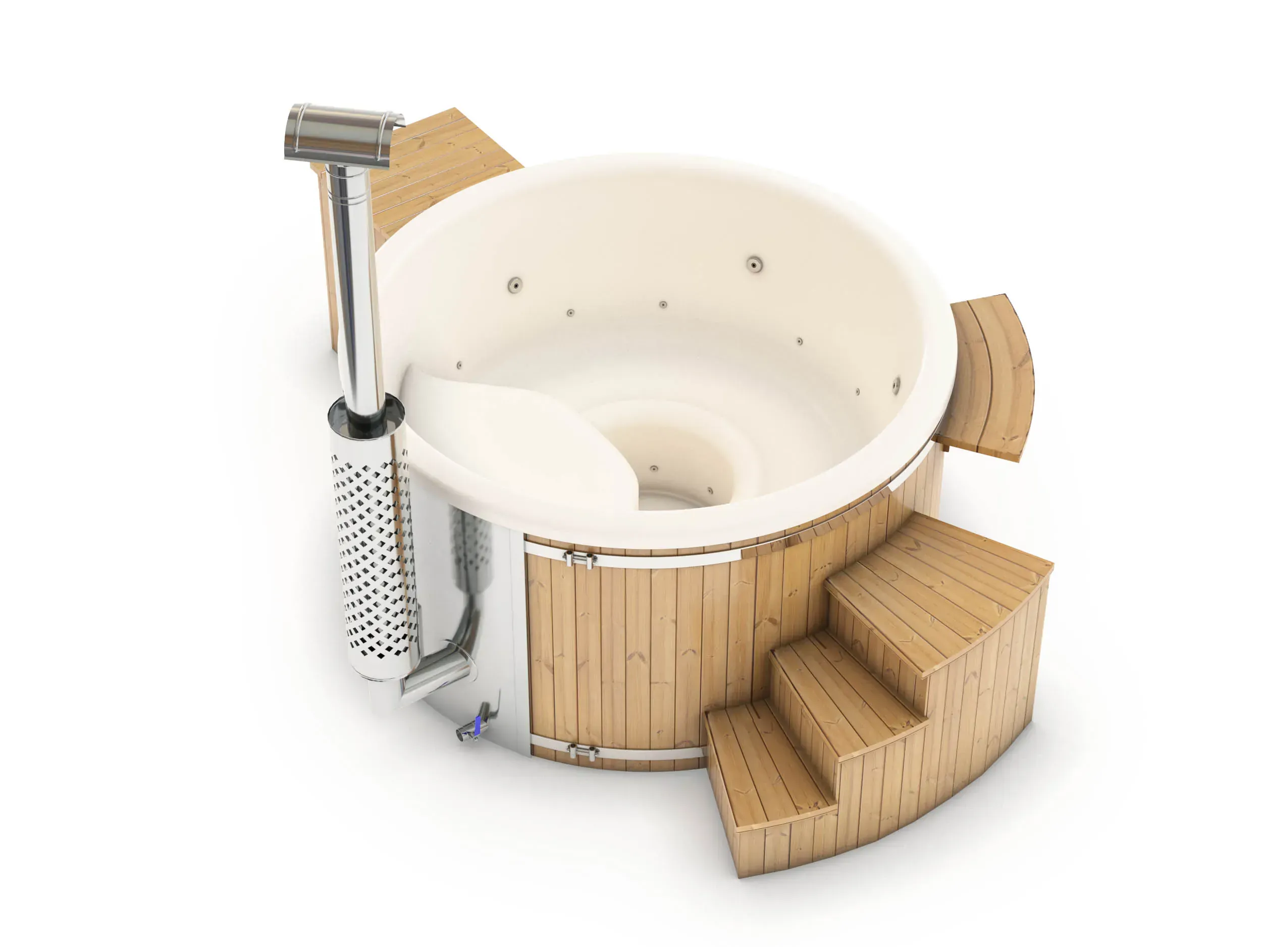 Do wyboru są piece zintegrowane wykonane ze stali AISI 316 lub AISI 304. Jeżeli planujesz używać soli, chlorków, środków o odczynie kwaśnym albo balia ma stać blisko morza, lepszym wyborem będzie AISI 316. Jeśli często korzystasz z balii i zależy Ci na jak najdłuższej żywotności pieca, rekomendujemy wersję z komorą spalania o grubości 3 mm oraz ściankami ze stali nierdzewnej o grubości 2 mm wokół całego pieca. Osoby chcące obniżyć koszt zakupu mogą wybrać wariant z komorą spalania 2 mm i ściankami 1,5 mm ze stali nierdzewnej.