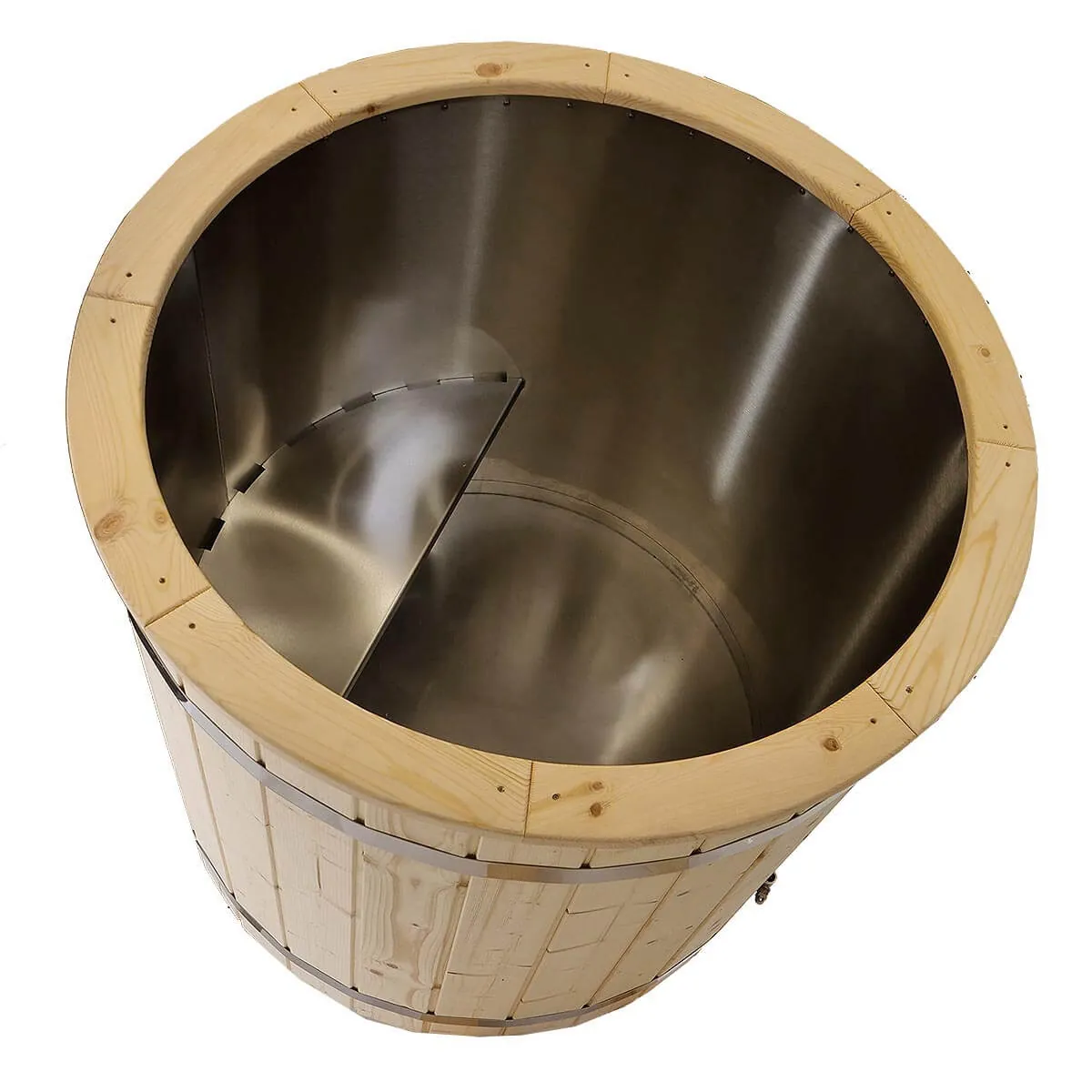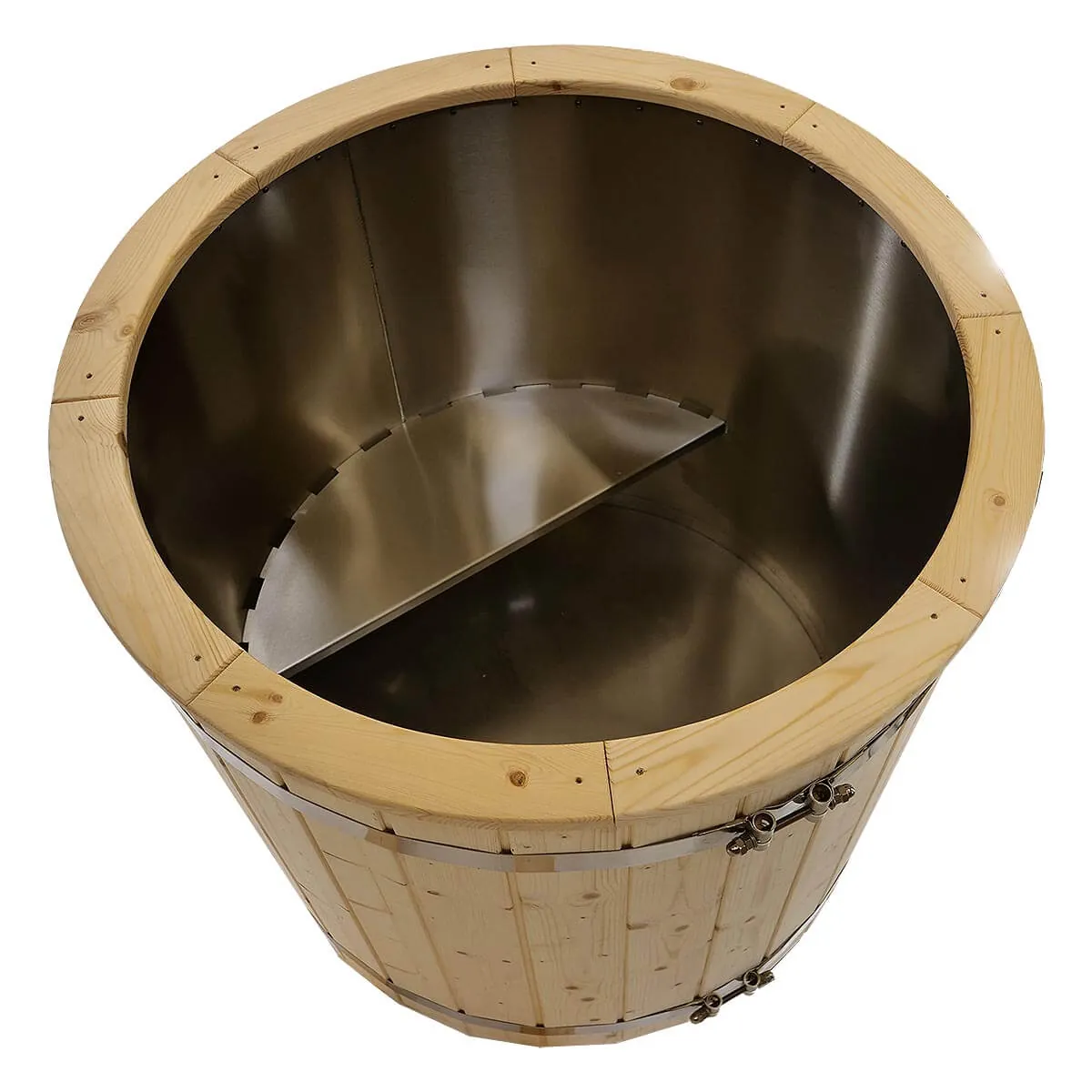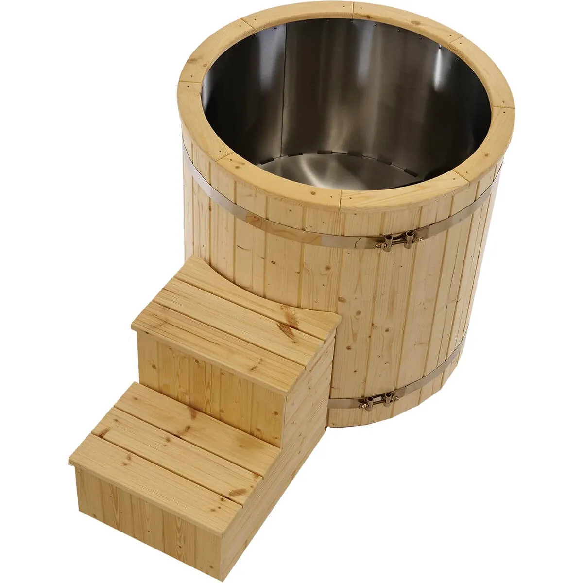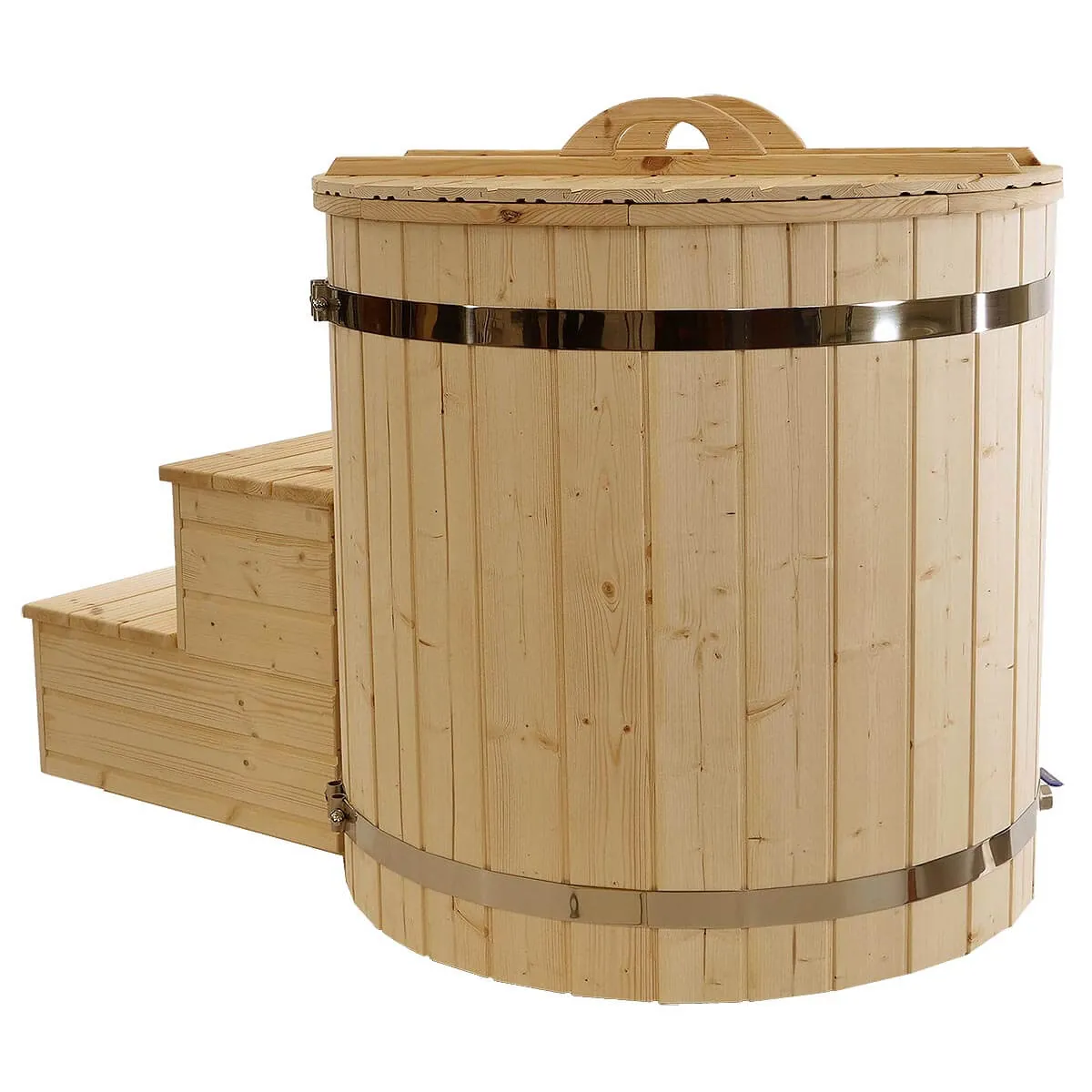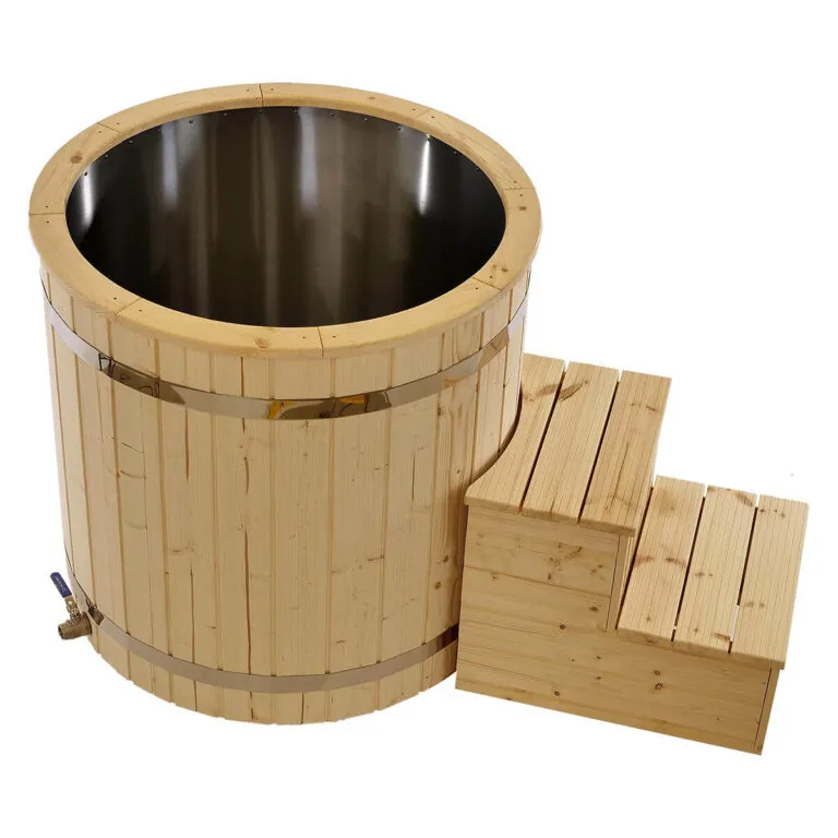 Balia posiada 40 mm dekoru z nordyckiego drewna, schodki oraz drewnianą pokrywę. Do schładzania możesz wsypywać do środka kostki lodu bez obaw o uszkodzenia – stal nierdzewna jest trwała i dobrze znosi codzienne użytkowanie.